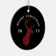 If you're looking for men's holiday ornaments, take a look at this Rustic Buffalo Plaid Deer Head Christmas Year Ceramic Ornament. Both sides are designed with a masculine lumberjack deer head silhouette on black background. The text is "Merry Christmas" in modern simple white lettering curved over the deer's head. Customised with year. (Deer image attributed to Pixabay/Angela Rose MS2)