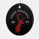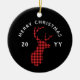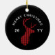 Rustic Buffalo Plaid Deer Head Christmas Year Ceramic Ornament
