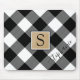 Black and white buffalo check plaid mouse pad with monogram on centre and a modern handwritten script name. Delete the sample name to leave that area blank if not desired. The text font style, size and colour can be changed for a custom lookby clicking on CUSTOMIZE FURTHER under the PERSONALIZE section or by contacting the designer via Zazzle Chat or makeitaboutyoustore@gmail.com if you'd like this design modified, on another product or would like coordinating items.