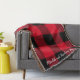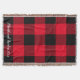 Rustic Buffalo Plaid Red Black Monogram Names Throw Blanket