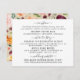 Wedding information cards include reception, accommodations for two hotels, and wedding website information. The back of the card features a floral pattern of beautiful summer and fall watercolor flowers, including roses, dahlias, peony flowers, and greenery, in a gorgeous autumn palette of burgundy red, golden yellow, peach orange, blush pink, and shades of green with a neutral beige background colour.