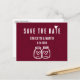 Minimalist rustic wedding save the date postcard with modern calligraphy ideal for a burgundy rustic country/backyard/barn wedding party.