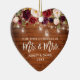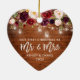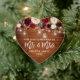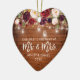 Rustic Wood, Modern Brush Script, Watercolor Burgundy Marsala Floral, Our First Christmas as Mr. and Mrs. Heart Wedding Ornament with Mason Jar String Lights
