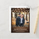 Rustic country string lights and mason jar with burgundy, red, Marsala, maroon , ivory, blush colour floral bouquet and eucalyptus leaves on wood background wedding Save the date customisable photo postcard. Please contact me for any help in customisation or if you need any other product with this design.