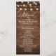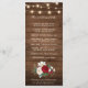 Rustic country string lights and mason jar with burgundy, red, Marsala, maroon , ivory, blush colour floral bouquet and eucalyptus leaves on wood background wedding program card. Please contact me for any help in customisation or if you need any other product with this design.