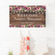 Quinceañera Welcome banner with a rustic dark brown barn wood background and twinkling string lights with pink and burgundy watercolor floral. Formatted horizontally. Contact me for assistance with your customisations or to request additional matching or coordinating Zazzle products.