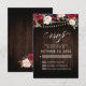 Rustic country wood floral boho wedding invitation features hand-painted watercolor floral graphics / roses in rich tones of Burgundy , Marsala Red navy blue and blush pink / peach and charming hand lettering style font with String lights mason jar and lace wooden background. Please contact me for any help in customisation or if you need any other product with this design.