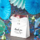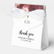 Elegant wedding favour boxes featuring rustic watercolor burgundy & blush pink florals, your initials, the saying "thank you", your names, and the wedding date.