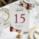 Rustic Burgundy Floral Wedding Table Number Card.