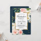 Rustic Burgundy Navy Blue & Pink Floral Gold Frame Invitation
