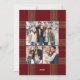 Share heartfelt holiday wishes with this elegant Christmas photo card featuring your vertical family photo framed by a watercolor pine garland. The background showcases a rustic burgundy plaid pattern that adds warmth and seasonal charm. “Merry Christmas” is displayed in classic red lettering beneath your photo, with your family name shown below. The back of the card offers space for three additional photos in a collage layout, allowing you to share even more cherished memories. A timeless and festive choice for your holiday greetings.