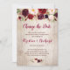 Event Postponed Announcement Template - Rustic Wood Burgundy Red Floral Change of Date Card.