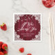 These elegant and romantic rustic burgundy wedding paper napkins featuring a barn wood and white floral lace background adorned with string lights are ideal for a burgundy red rustic summer, fall or winter wedding wedding party. Easily personalise with your own wedding details. Burgundy red rustic country wedding paper napkins. Rustic fall wedding paper napkins. Rustic winter wedding paper napkins. Rustic wood and lace wedding paper napkins. Rustic burgundy it was always you wedding paper napkins.