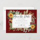 Rustic Burgundy Roses Sunflowers Save the Dates Po Postcard