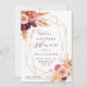 This couples shower invitation features rustic watercolor flowers in terracotta, burgundy, burnt orange, yellow, blush with beige and brown pampas grass, and a gold geometric frame. For more advanced customisation of this design, please click the "customise further" link. Matching items are also available.
