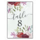 Rustic Burgundy Watercolor Floral Wedding Table Number