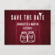 Minimalist rustic wedding save the date postcard with modern calligraphy ideal for a burgundy rustic country/backyard/barn wedding party.
