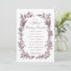 Elevate your guest experience with this romantic burgundy wildflower wreath wedding timeline card, featuring a delicate hand-drawn botanical frame of wild blooms and foliage, paired with a classic bow accent and custom monogram. This wedding itinerary card is the perfect way to keep your guests informed of your special day’s schedule, while seamlessly complementing your matching burgundy wildflower wedding invitations, menu cards, and details cards for a cohesive, elegant stationery suite.