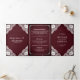 Rustic Burgundy Wood Lace String Lights Wedding Tri-Fold Invitation
