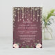 Rustic Burgundy Wood & String Lights Wedding Invitation