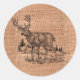 Rustic Burlap And Deer Illustration Classic Round Sticker