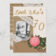 Rustic Burlap and Lace with Pink Rose Photo 70th Birthday Party Invitation