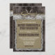 Rustic Horseshoe Burlap and Lace Wedding Invitations - features a printed barn wood background with twine, lace and a burlap text box. Two horseshoes sit at the top covered by a twine bow (printed). No elements are real -- only printed.
