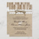 This custom wedding invitation is perfect for your vintage or rustic themed wedding. This invitation features a burlap-look background with a stripe of barn wood on the top. To tie it all together, a strip of lace and jute twine complete the look. NOTE - This is a high-quality printed image of lace, burlap, and twine; the invitation does not contain actual lace, burlap, or twine. Thanks!