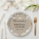 Rustic bridal shower paper plates featuring distressed burlap and string lights. Easily personalise online. Matching items availalbe to complement these rustic bridal shower paper plates.