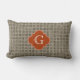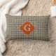 Rustic Burlap Burnt Orange Quatrefoil Monogram Lumbar Cushion