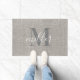 Rustic Burlap Calligraphy Family Name Monogram Doormat