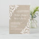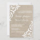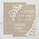 This rustic wedding invitation features a burlap look background with a faded white damask design running along the border. The perfect blend of rustic materials with the elegance of damask detailing. Perfect for your barn wedding, outdoor wedding, country wedding, rustic wedding, vintage wedding, or elegant wedding. Don't forget to personalise the back with your names and wedding date.