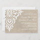 This rustic wedding invitation features a distressed burlap look background with a faded white damask design. The perfect blend of rustic materials with the elegance of damask detailing. Perfect for your barn wedding, outdoor wedding, country wedding, rustic wedding, vintage wedding, or elegant wedding.
