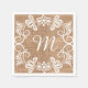 A stylish monogrammed paper napkin with a rustic burlap print background.A white floral wreath pattern frames the monogram initial letter. An elegant paper napkin suitable for all special parties.