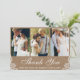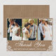 Rustic Burlap Lace 3 Photo Wedding Thank You Card