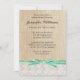 Rustic Burlap Lace Mint Ribbon Bridal Shower Invitation