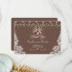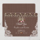 Unique card design featuring string lights, old lantern with marsala flowers bouquet on a burlap with lace corners background. Use Customise tool to add your info. See, also, my Vintage Lace Collection.