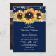 Rustic Burlap Lace Sunflower Navy Blue Wedding Invitation