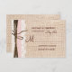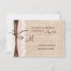 This rustic wedding invitation is perfect for any country wedding. It features a rustic printed burlap background with printed lace and twine on the side with a pink ribbon accent. Perfect for a country or barn wedding. Just add your RSVP date to the card. The burlap, twine, and lace are just printed designs. It is not actual burlap fabric, lace, or twine.