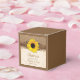 Rustic burlap, lace, and wood yellow sunflower wedding favour boxes. This unique rustic sunflower wedding box design features a bright yellow sunflower, a burlap and lace look background, and a wood and leather look emblem under the sunflower. A pretty design for a summer or fall / autumn wedding. It can work for rustic, barn, farm, western, or country style weddings. There are a lot of subtle details in the design. Browns, yellows, beige are the prominent colours.