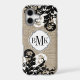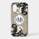 © 2014 Socialite Designs. Our rustic burlap and flourish design mobile case has a banner for your monogram, initials or name.