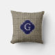 Rustic Burlap Look, Navy Blue Quatrefoil Monogram Cushion