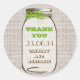 Rustic country wedding thank you stickers with a hand drawn mason jar and a green twine bow around it. The burlap background is a printed design on the paper - not actual burlap fabric. Please contact me if you need help with customisation or have a custom colour request.