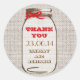 Rustic country wedding thank you stickers with a hand drawn mason jar and a red twine bow around it. The burlap background is a printed design on the paper - not actual burlap fabric. Please contact me if you need help with customisation or have a custom colour request.