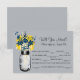 Matching LIB RSVP card perfect for a country style wedding or maybe you just love Mason Jars! Mason Jar hanging on a hook filled with country wildflowers. A Light Silver Grey background and hanging Mason Jar and wildflowers in colours of Navy and Yellows. If you have any questions on this design or want a colour change please email me paula@labellarue.com Also check for the RSVP, RECEPTION and GUEST SEATING Cards to match!