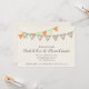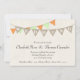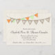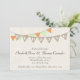 This rustic wedding invitation features burlap-look pennants with mint green and orange pennants strung in a festive arrangement. Perfect for a vintage, rustic, or outdoor wedding theme. Customise the text on the Pennants to suit your needs. Contact us for custom options.