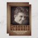 This rustic inspired photo graduation announcement features a brown burlap background and frame for your black and white photo (*IMPORTANT this photo must be black and white because it uses the provided San Telmo filter applied to get the colouring this photo has). Below the photo it reads "Graduate, Your Name, Your high school and Class of 20XX"  to personalise. The back of the card has brown burlap and your monogrammed initials for you to personalise. This was a fun design to create for all you guy grads out there that want something unique. Enjoy! Designed by artist ©Susan Coffey.