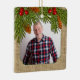 Rustic Burlap Pine Boughs Memorial Photo Christmas Ceramic Ornament