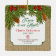 Country, rustic burlap with pine boughs, cones and berries memorial photo Christmas ornament (square shape). The front has a photo of your loved one that you can change out. The back has your loved one's name, years lived and a nice verse that you can change. Evergreen branches with pine cones and berries paired with country or rustic simulated burlap background.