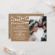 Rustic country wedding invitations featuring burlap textured background, string twinkle lights, a photo of the bride and groom, and a modern wedding template.